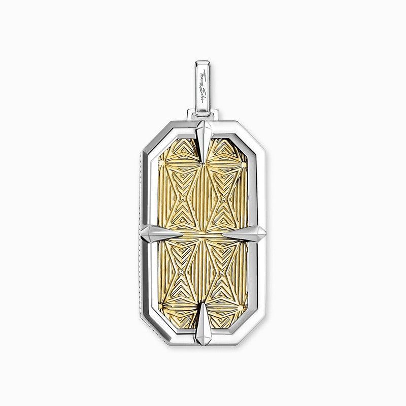 - Nautical inspired symbolism This symbolic piece of jewellery provide strength in achieving personal goals along the wearers life path. The three-dimensional pendant showcases a stylised compass in the centre. Crafted with precision by connecting several layered components, it features a 18k yellow gold plated inlay with graphic engraving lines providing a powerful look. The edge of the silver pendant with its cord look evokes the nautical inspiration of its central motif down to the last detail.