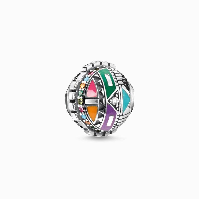 The figure 4 shapes life, as this colourful Sun Bead shows. With its countless details, this nearly futuristic-looking item of jewellery is inspired by the traditional sun symbol of the Native Americans of the South West, with rays that represent the four stages of life, among other things.