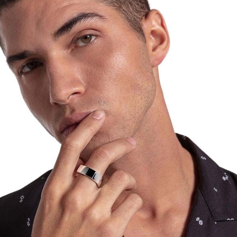 - Suitable as a couples’ ring Interesting contrast between the front and side view: architecturally inspired, the highly polished surfaces of this solid Sterling silver ring meet to create a square shaped ring with an edgy twist.