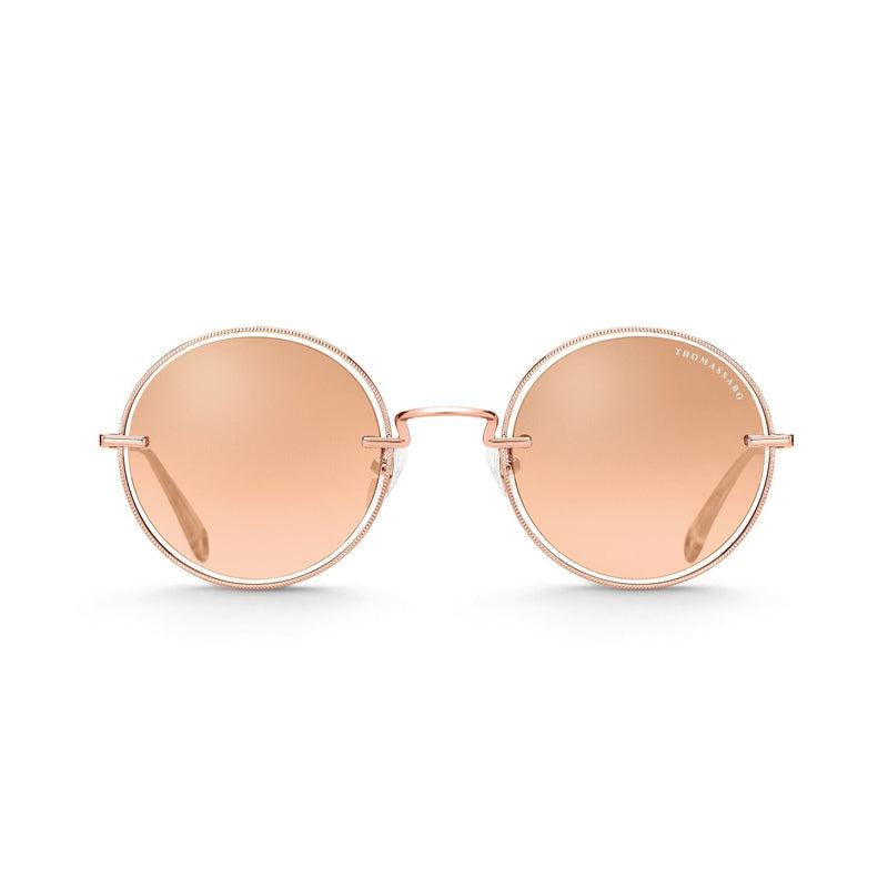 - THOMAS SABO logo branding on the lens and on the temple ends Eyewear designed by THOMAS SABO: The unmistakeable THOMAS SABO signature with its iconic details, colours and materials gives the classic round glasses shape a unique refinement.