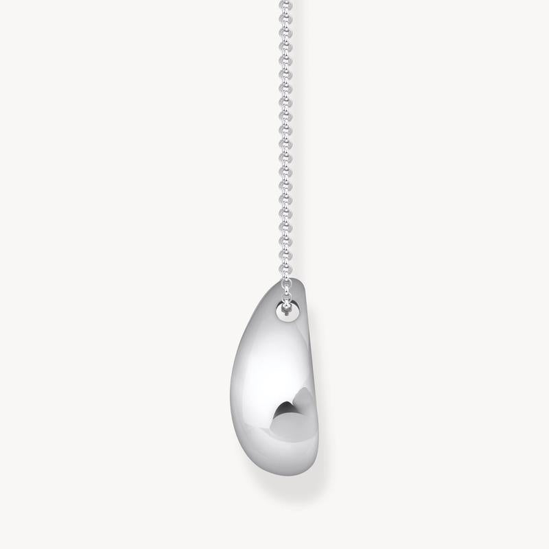 This elegant necklace with its drop pendant is made of recycled silver and created with the highest-quality craftsmanship and sophistication. Its design is inspired by nature and recreates organic shapes with their timeless and beautiful silhouettes. Treat yourself to this elegant, modern necklace and pendant that both exude understated luxury. Thanks to its open back with cut-outs and the TS logo, you can easily wear it all day long.
